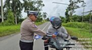 Polres Pulang Pisau – Satuan Lalu Lintas – Sebagai upaya dalam menciptakan situasi Kamseltibcarlantas di jalan raya dan mencegah kecelakaan lalu-lintas (Sat Lantas) Polres Pulang Pisau melaksanakan kegiatan Pembagian brosur tertib berlalu-lintas dan teguran humanis kepada masyarakat di wilayah hukum Polres Pulang Pisau, Kamis (4/1/2024).