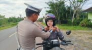 Satlantas Polres Pulang Pisau Bagikan Brosur Kamseltibcarlantas kepada Pengendara