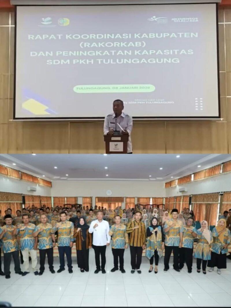 Tulungagung, TargetNews.ID -Bupati Tulungagung menghadiri sekaligus memberikan arahan strategis dalam kegiatan Rapat Koordinasi Kabupaten (Rakorkab) dan Peningkatan Kapasitas Sumber Daya Manusia (SDM) Program Keluarga Harapan (PKH) Kabupaten Tulungagung. Acara tersebut berlangsung pada Kamis (08/01/2026) di Gedung Sabha Husada Bhakti, Dinas Kesehatan Kabupaten Tulungagung.