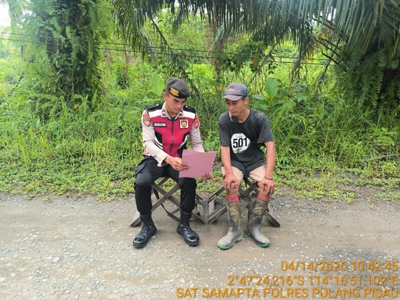 Pulang Pisau – Guna mengantisipasi kejadian karhutla sejak dini, sat Samapta Polres Pulang Pisau (Pulpis), menggelar patroli Maja dan patroli dialogis. Sasaran patroli yakni menyambangi komunitas masyarakat dan pemilik lahan yang ada di willkum Polres Pulang Pisau. Senin (14/04/2025) Siang.