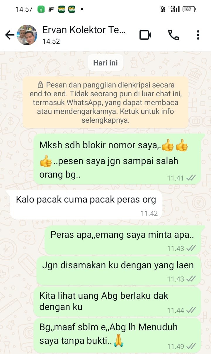 Hal tersebut sangat jelas dikatakan oleh “Ervan” melalui balasan pesan singkat What’sApp pribadi miliknya dengan nomor 081379XXXX93 ,
