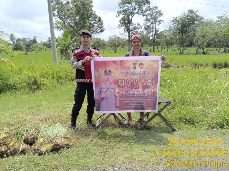 Pulang Pisau – Guna mengantisipasi kejadian karhutla sejak dini, sat Samapta Polres Pulang Pisau (Pulpis), menggelar patroli Maja dan patroli dialogis. Sasaran patroli yakni menyambangi komunitas masyarakat dan pemilik lahan yang ada di willkum Polres Pulang Pisau. Senin (28/04/2025) Siang.
