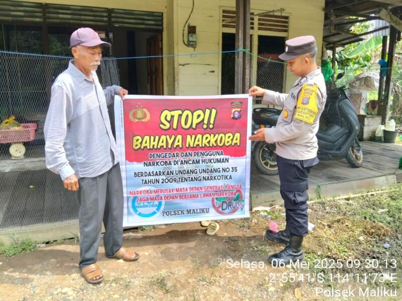 Polres Pulang Pisau – Bhabinkamtibmas Desa Garantung Polsek Maliku, Polres Pulang Pisau, Polda Kalteng, Brigpol I Putu Tirta P., melaksanakan sosialisasi stop Narkoba Kepada warga masyarakat, Selasa (06/05/2025) Pagi.