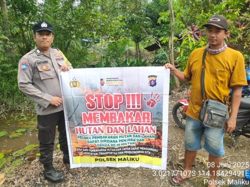 Polres Pulang Pisau – Personel Bhabinkamtibmas Desa Tahai Jaya, Polsek Maliku, Polres Pulang Pisau, Polda Kalteng, Bripka Nafiandi, S.H., maksimalkan sosialisasi dan himbauan larangan karhutla di desa binaannya sebagai langkah untuk meminimalisir potensi terjadinya karhutla, Minggu (08/06/2025) Pagi.