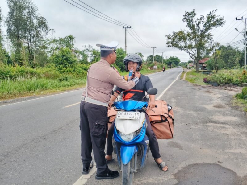 Polres Pulang Pisau – Satuan Lalu Lintas – Dengan Senyuman yang ramah Personel Satlantas Polres Pulang Pisau mengingatkan pengendara roda dua agar selalu klik helm saat berkendara. Senin (7/7/2025).
