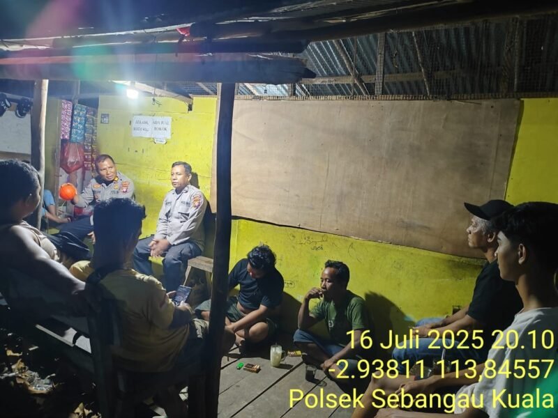 Polsek Sebangau Kuala – Polres Pulang Pisau, Polda Kalteng, memberikan sosialisasi dan imbauan Kamtibmas kepada masyarakat Kecamatan Sebangau Kuala agar turut serta dalam menjaga Kamtibmas agar tetap kondusif, Rabu (16/07/2025) Malam.