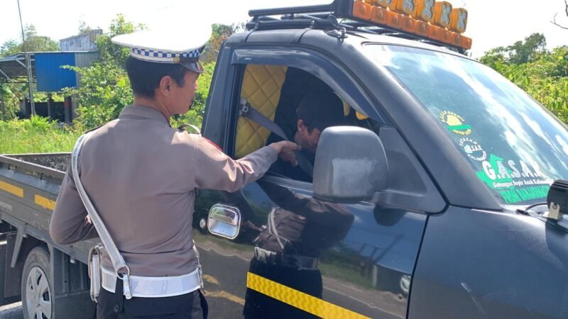 Anggota Satlantas Polres Pulang Pisau, Memberi Teguran Kepada Pengemudi Yang Tidak Menggunakan Sabuk Pengaman dengan baik