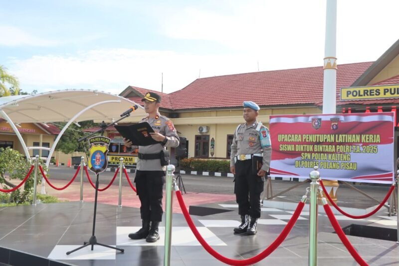 PULANG PISAU – Wakapolres Pulang Pisau, Kompol Sahat Martua Pasaribu, S.H., memimpin upacara penutupan Latihan Kerja (Latja) siswa Sekolah Polisi Negara (SPN) Polda Kalteng di lapangan apel Mapolres Pulang Pisau, Sabtu (08/11/2025). Sebanyak 24 siswa SPN resmi menyelesaikan Latja setelah mengikuti praktik lapangan yang bertujuan meningkatkan kemampuan dan profesionalisme calon anggota Polri.