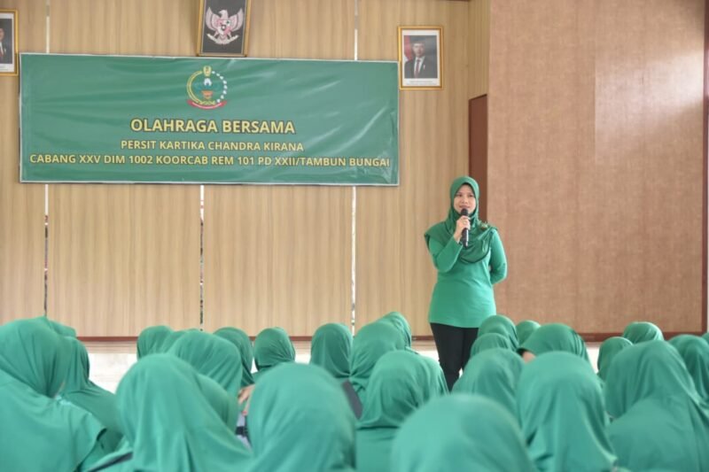 BARABAI – Persit Kartika Chandra Kirana Cabang XXV Dim 1002 Koorcab Rem 101 PD XXII/Tambun Bungai menggelar kegiatan olahraga bersama bertempat di halaman apel Makodim 1002/Hulu Sungai Tengah (HST), Rabu (21/01/2026).