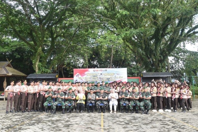 “Kegiatan perkemahan ini bertujuan menanamkan nilai-nilai Pancasila, UUD 1945, NKRI, dan Bhinneka Tunggal Ika, serta membangun mentalitas pemimpin muda yang berintegritas. Materi yang diberikan meliputi pelatihan fisik terstruktur, latihan baris-berbaris, kepemimpinan, wawasan kebangsaan, sejarah perjuangan, dan keterampilan dasar Bela Negara,” tegas Dandim.