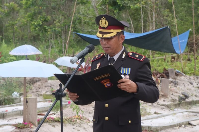 Kapolres Pulang Pisau AKBP Iqbal Sengaji, S.I.K., M.Si., melalui Wakapolres Kompol Sahat Martua Pasaribu, S.H., memimpin langsung prosesi yang berlangsung khidmat tersebut. Upacara ini dihadiri oleh jajaran personel Polres Pulang Pisau, keluarga almarhum, serta masyarakat setempat yang ingin mengantarkan almarhum ke tempat peristirahatan terakhir.