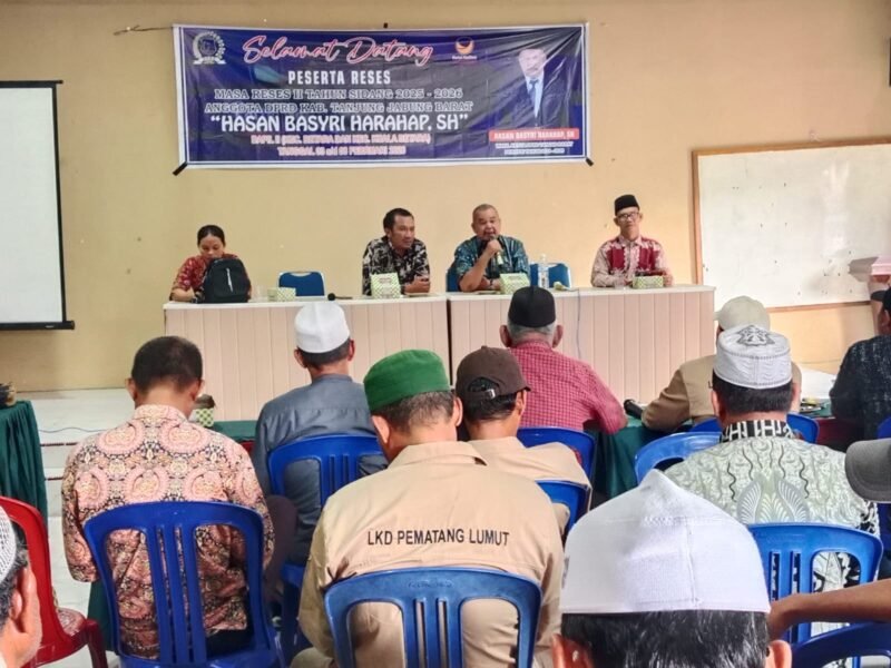 Kuala Tungkal, TargetNews.ID – Wakil Ketua DPRD Kabupaten Tanjung Jabung Barat (Tanjab Barat), Hasan Basyri Harahap, S.H., kembali turun langsung ke tengah masyarakat dalam kegiatan reses masa sidang Tahun 2025–2026 yang digelar di Desa Pematang Lumut, Kecamatan Betara, Kamis (05/02/2026).