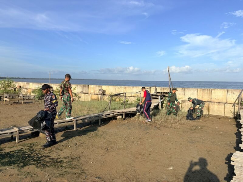 Sambas – Dalam rangka menjaga kebersihan lingkungan serta menumbuhkan kepedulian terhadap kelestarian pesisir, Anggota Koramil 05/Pemangkat bersinergi bersama TNI Angkatan Laut, Pemerintah Desa (Pemdes) dan Pol Airud melaksanakan kegiatan karya bakti pembersihan pantai di wilayah binaan Desa Sinam, Kec. Pemangkat, Kab. Sambas, Sabtu (7/02/26).