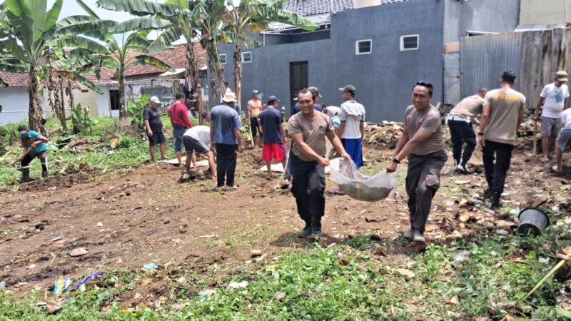 Tegal,TargetNews.id -Tim Siaga Bhayangkara Polres Tegal bersama personel Polsek Lebaksiu dan masyarakat melaksanakan kerja bakti pembersihan lahan yang akan digunakan sebagai lokasi pembangunan mushola sementara bagi warga terdampak bencana tanah bergerak di Desa Kajen, Kecamatan Lebaksiu, Kabupaten Tegal, pada Rabu (11/02/2026).