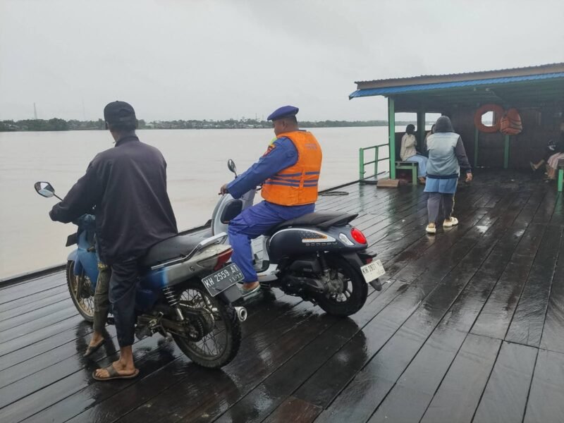 Pulang Pisau – Cuaca ekstrem tidak menyurutkan semangat anggota Satpolairud Polres Pulang Pisau untuk memberikan pelayanan terbaik kepada masyarakat. Di tengah guyuran hujan yang membasahi kawasan Dermaga Fery Penyeberangan, sejumlah personel kepolisian tampak sigap membantu warga menaikkan kendaraan roda dua (R2) ke atas kapal fery guna mencegah terjadinya kecelakaan akibat kondisi jalan yang licin.