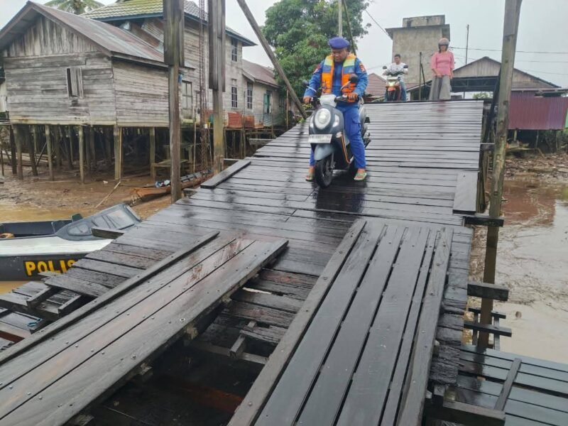 Pulang Pisau – Kondisi cuaca hujan yang mengguyur wilayah Pulang Pisau menciptakan tantangan berat di area penyeberangan. Ram atau jembatan penghubung menuju kapal feri menjadi sangat licin dan curam akibat guyuran air hujan. Menanggapi situasi yang membahayakan keselamatan pengguna jalan tersebut, personel Satpolairud Polres Pulang Pisau melakukan aksi sigap dengan terjun langsung membantu para pengendara roda dua (R2).