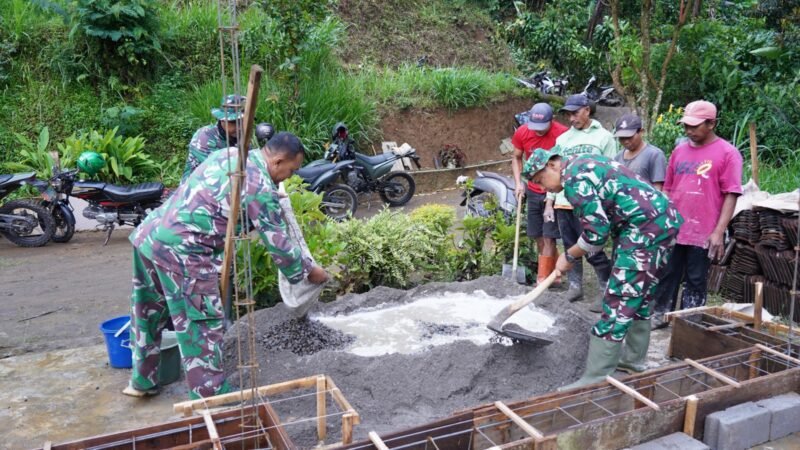 Kegiatan ini merupakan bagian dari sasaran fisik TMMD yang bertujuan membantu percepatan pembangunan rumah layak huni bagi warga kurang mampu. Dengan penuh semangat, anggota TNI dan warga setempat bahu-membahu mengaduk material dan melakukan pengecoran pondasi rumah secara gotong royong.