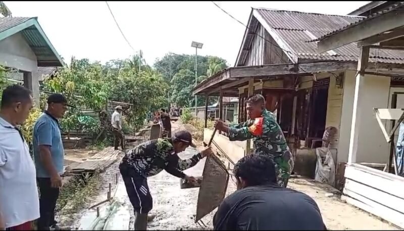 Sambas – Wujud nyata kemanunggalan TNI dengan rakyat, Babinsa Desa Buduk Sempadang melaksanakan kegiatan gotong royong bersama masyarakat dalam pengecoran jalan setapak di wilayah Desa Buduk Sempadang, Kec. Selakau, Timur, Kab. Sambas, Rabu (18/02/26).