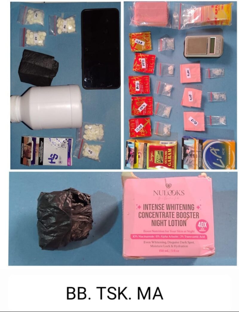 Adapun total barang bukti yang berhasil diamankan yakni 971 butir pil LL dan sabu dengan berat bruto ±2,82 gram, serta satu unit timbangan digital dan satu unit handphone yang diduga digunakan untuk transaksi.