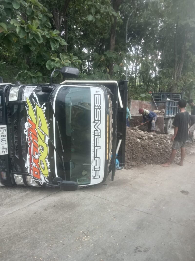 Menurut keterangan saksi di lokasi, kejadian berlangsung cepat dan sempat terdengar suara benturan keras. Warga sekitar yang melihat menyebut insiden itu seperti “adu banteng” karena kedua truk saling berhadapan di jalur menanjak.