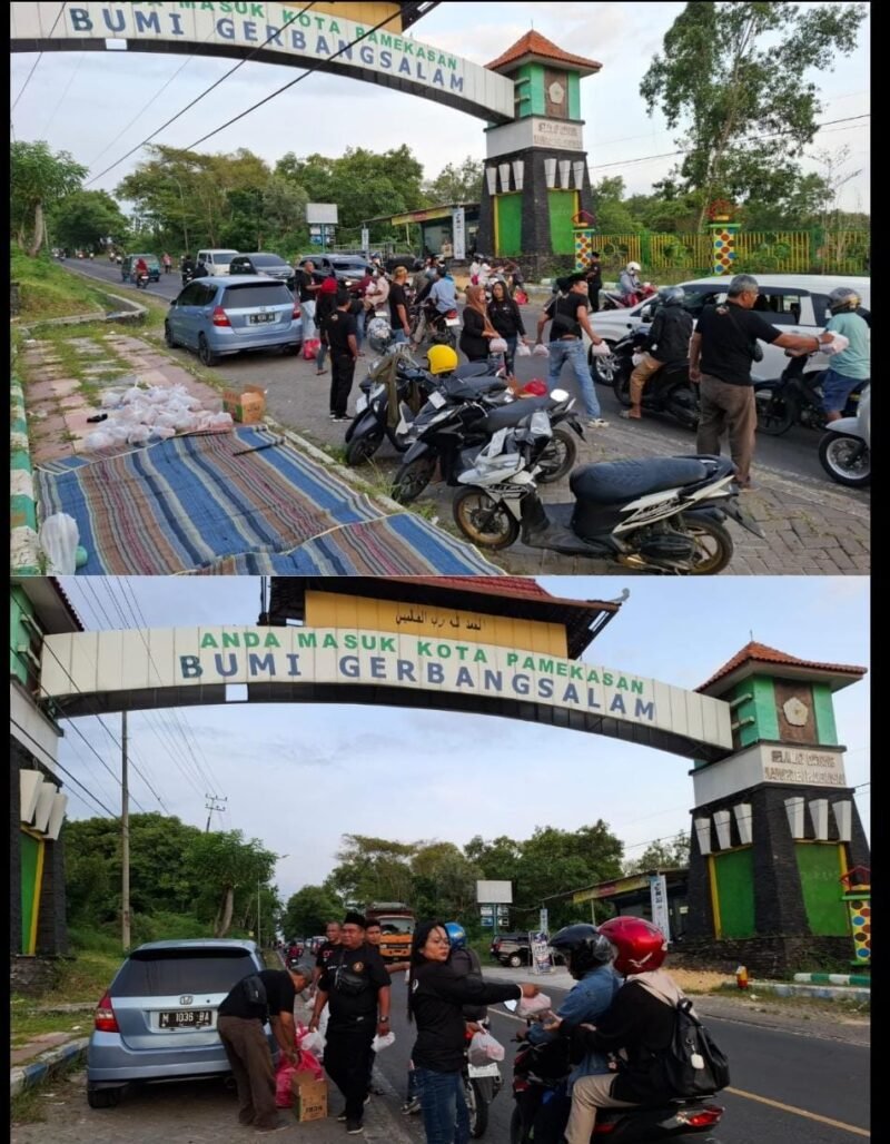Pamekasan_TargetNews.id_Komunitas Jurnalis Jawa Timur (KJJT) Wilayah Pamekasan menggelar kegiatan bagi bagi takjil di bulan suci Ramadhan kepada pengendara dan pejalan kaki yang melintas,Yang lokasinya di jl.Raya Tlanakan kec.Tlanakan kab.Pamekasan sebanyak 500 paket takjil, Rabu (11/03/2026).
