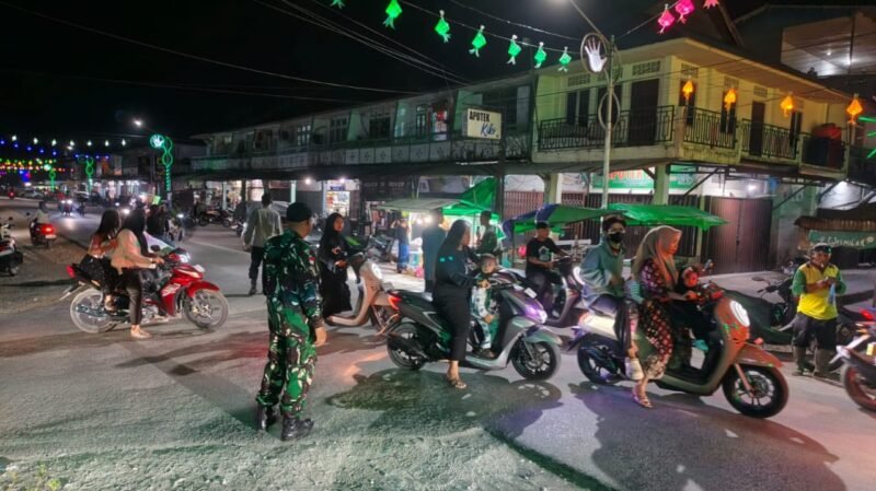Sambas – Dalam rangka menjaga situasi keamanan dan ketertiban masyarakat menjelang Hari Raya Idul Fitri, anggota jajaran Kodim 1208/Sambas melaksanakan kegiatan pengamanan (Pam) malam takbiran di wilayah Kabupaten Sambas, Jumat malam (20/03/26).