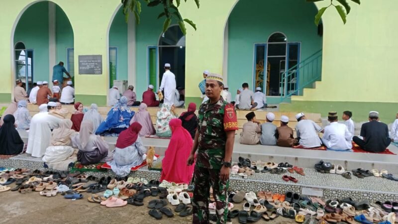 Sejak sebelum pelaksanaan Sholat Id dimulai, Babinsa telah berada di lokasi guna membantu persiapan, mulai dari penataan tempat ibadah hingga pengaturan parkir kendaraan jamaah. Kehadiran mereka bertujuan untuk memastikan seluruh rangkaian ibadah dapat berjalan dengan tertib, aman, dan lancar.