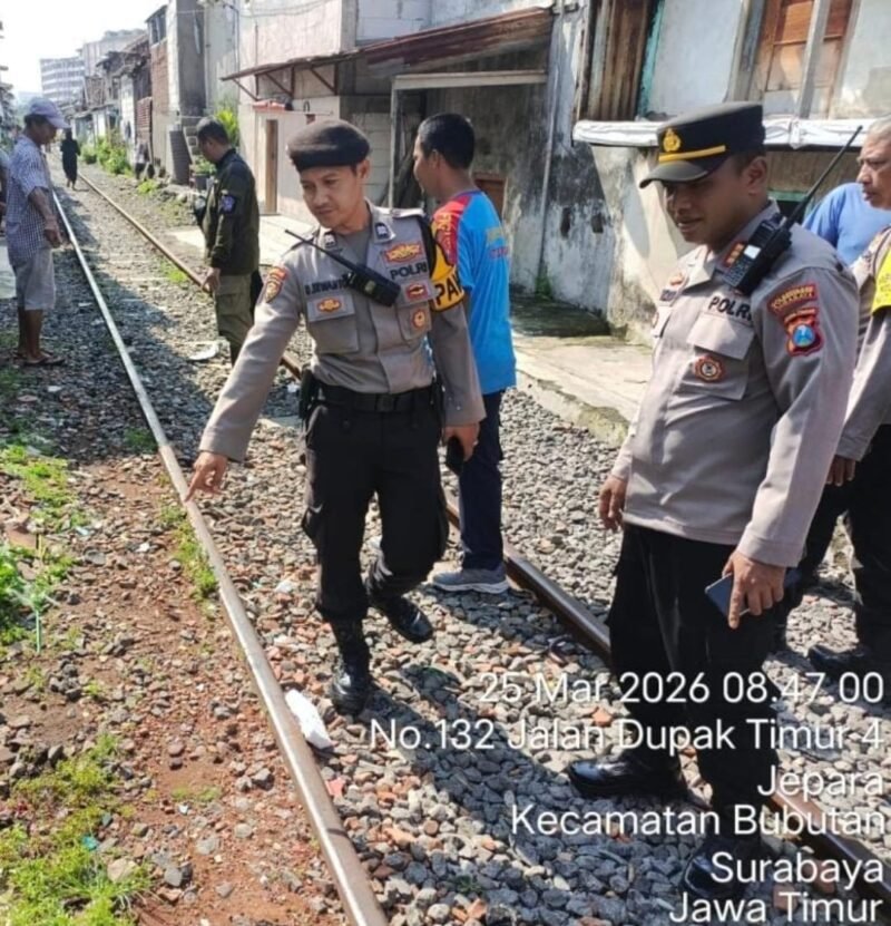 SURABAYA – Dikabarkan sekitar pukul 08.00 WIB. Seorang warga bernama Roepijono (23) dilaporkan terseret kereta api barang hingga mengalami patah kaki kanan. Tepatnya di jalur rel kereta api kawasan Kemayoran Baru petak Jalan SDT–KLM Km 3+8/9,, Surabaya, pada Rabu pagi (25/3/2026).