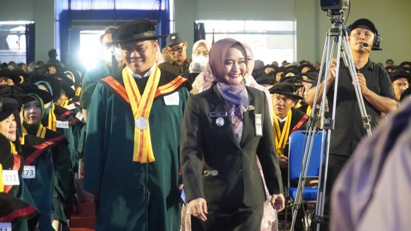 Hal tersebut disampaikan Wakil Walikota Tegal, Tazkiyyatul Muthmainnah yang akrab disapa Mba Iin dalam sambutannya saat menghadiri Wisuda Magister ke-20 dan Sarjana ke-75 Universitas Pancasakti Tegal periode tahun akademik 2025/2026 di Auditorium Darjoen Senoatmojo, sabtu (11/04/2026).