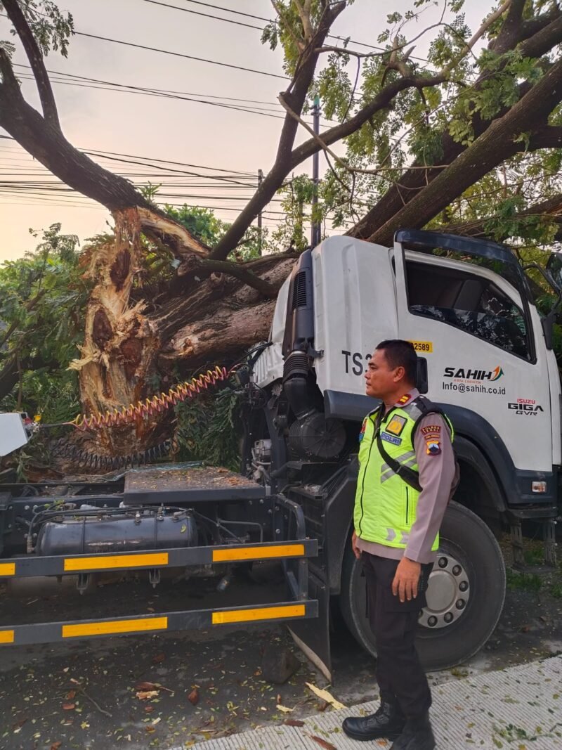 Kami langsung mendatangi lokasi setelah menerima laporan, melakukan pengamanan dan olah TKP, serta mengevakuasi pohon yang menimpa kendaraan agar arus lalu lintas kembali lancar. Alhamdulillah tidak ada korban jiwa dalam kejadian ini,” ujar IPTU Mukhlisin.