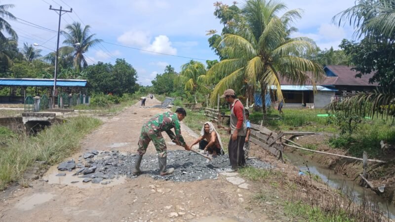 Sambas – Dalam upaya meningkatkan aksesibilitas dan keselamatan pengguna jalan, Babinsa Desa Ratu Sepudak bersama warga setempat melaksanakan kegiatan gotong royong penimbunan jalan berlubang di wilayah Desa Ratu Sepudak, Kec. Galing, Kab. Sambas, Minggu (19/04/26).