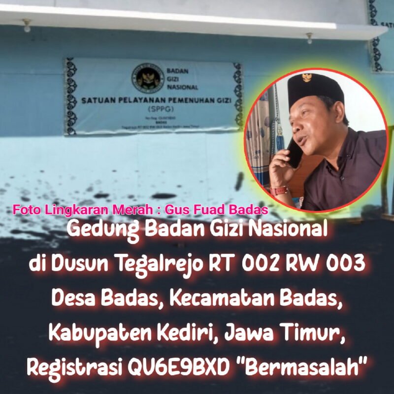 KEDIRI – Keberadaan Dapur Satuan Pelayanan Pemenuhan Gizi (SPPG) milik Badan Gizi Nasional yang berlokasi di Dusun Tegalrejo, RT 002 RW 003, Desa Badas, Kecamatan Badas, Kabupaten Kediri, Jawa Timur, dengan nomor registrasi QU6E9BXD, kini menuai masalah.