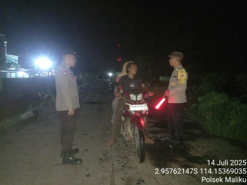 Polres Pulang Pisau – Polsek Maliku, Polres Pulang Pisau, Polda Kalteng, mencegah terjadinya potensi gangguan kamtibmas dengan melaksanakan Kegiatan patroli malam yang dilaksanakan secara mobile dalam rangka Harkamtibmas di wilayah Hukum Polsek Maliku, Senin (14/07/2025) Malam