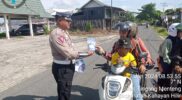 Satlantas Polres Pulang Pisau Bagi-Bagi Brosur dan Stiker Imbauan Kamseltibcarlantas