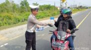 Polres Pulang Pisau – Satuan Lalu Lintas – Satlantas Polres Pulang Pisau membagikan brosur terhadap pengendara yang melintas di jalan raya, Jumat (9/5/2025) pukul 09.00 WIB