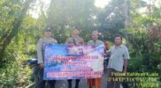 Terlihat Babinsa membantu pengendara roda dua melintasi jalan yang rusak tersebut dengan cara mendorong motor yang dikendarai oleh warga Desa Sebunga Kec. Sajingan Besar.